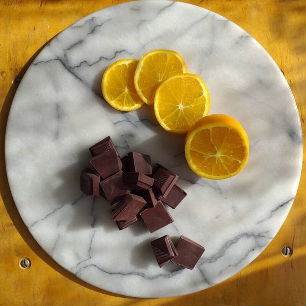 100% biologische ingredienten: fairtrade pure chocolade (cacaomassa, rietsuiker, cacaoboter, sojalecithine), verse sinaasappel, palmsuiker, ei, roomboter, rijstmeel.