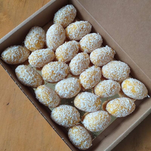 Speciaal voor pasen heb ik deze paaseitjes bedacht: een heerlijke combinatie van mango, kokos, witte chocolade en een beetje sinaasappelrasp. Gemaakt met 100% biologische ingredïenten.